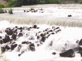 某川の中を走るイベント当日。前日に一雨降ったため川が増水。